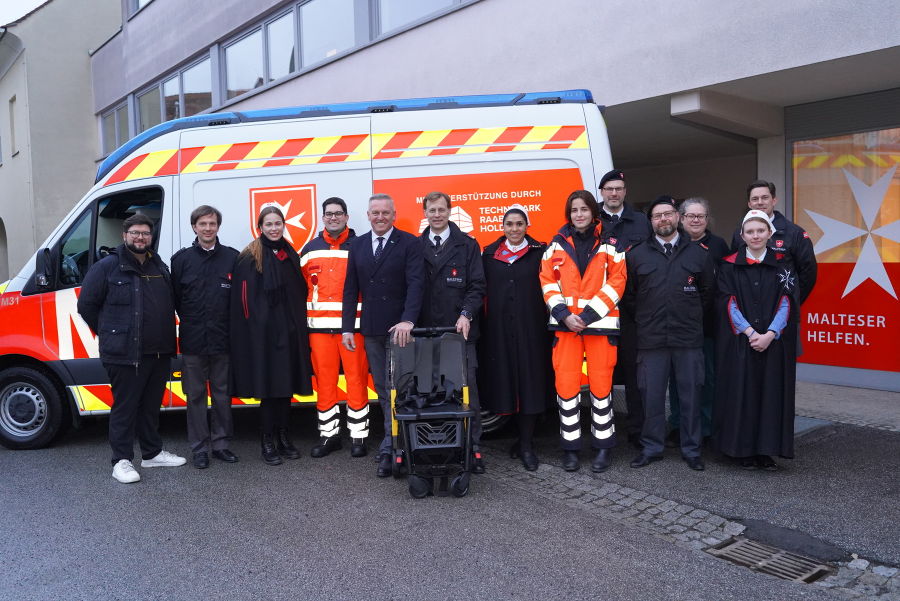 Graz (30. Jänner 2026).- Im Rahmen des Antrittsbesuches der Malteser bei Landeshauptmann und Katastrophenschutzreferent Mario Kunasek wurde unter anderem über die notwendige Anschaffung eines speziellen Transportmittels für kranke, ältere und beeinträchtigte Menschen gesprochen. Gestern (29. Jänner 2026) wurde dieser dafür notwendige Treppenstuhl offiziell an Georg Muhri (Bereichsleiter der Malteser-Dienste für Steiermark und Kärnten) sowie dessen Stellvertreterin Naomi Kienreich übergeben.